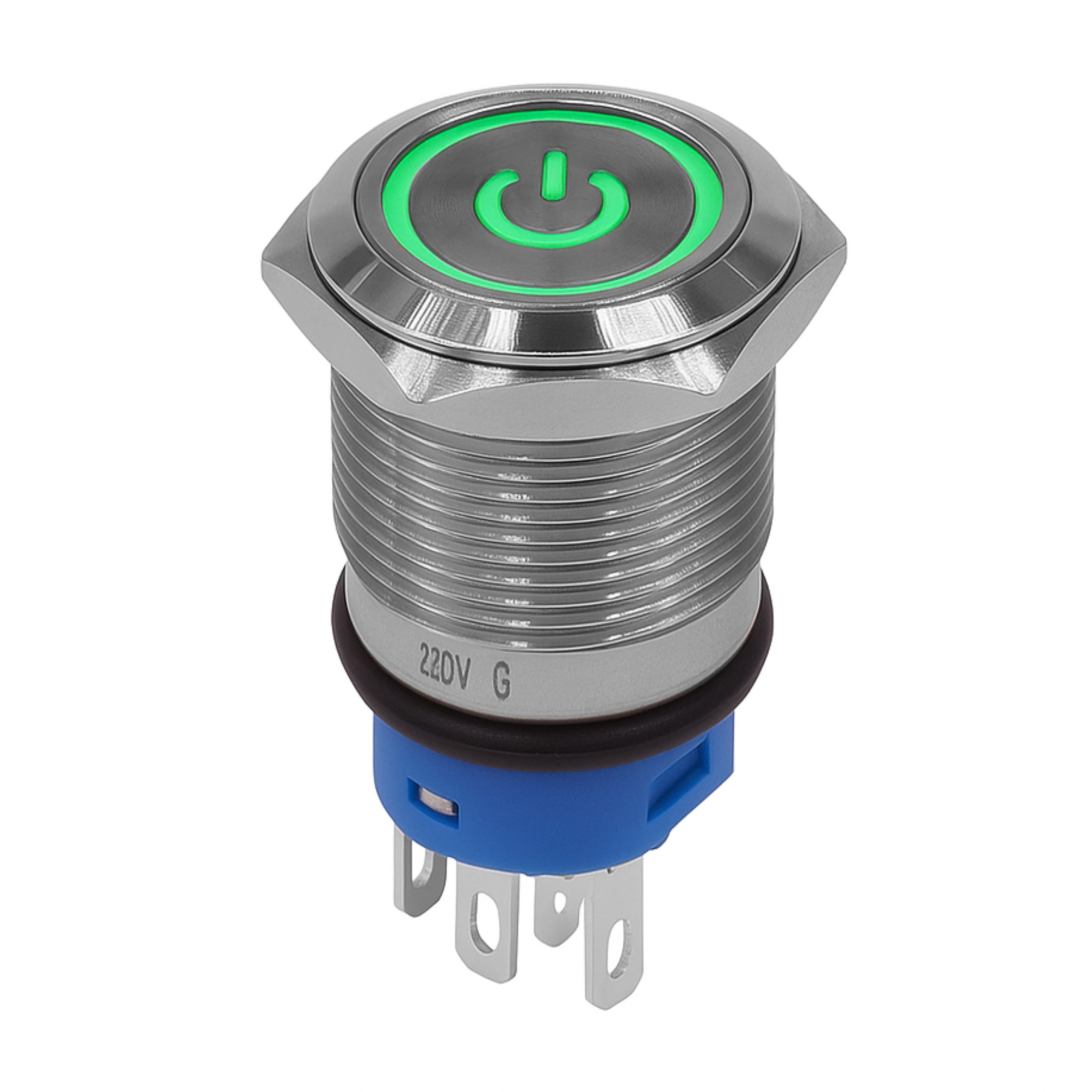 - Vandal-proof LED monostable button is a reliable solution for demanding applications. Green LED backlighting enhances visibility, and the sturdy 16mm metal housing provides resistance to damage. Adapted for 220V installation.