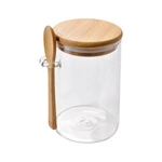Szklany Pojemnik Słoik Z Łyżeczką Drewnianą Pokrywką - Słoiczek 500ml