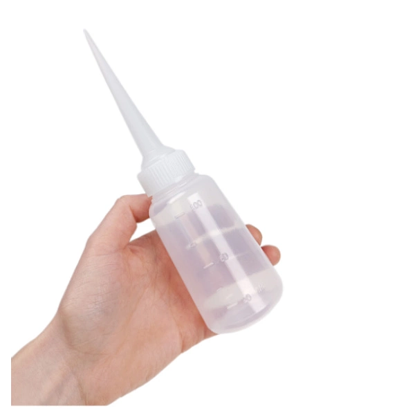 - Butelka o pojemności 100ml z aplikatorem przydatna w warsztacie elektronika, modelarza do przechowywania i dozowania różnego rodzaju olejów, płynów i roztworów. Na butelce została umieszczona podziałka co 20ml.