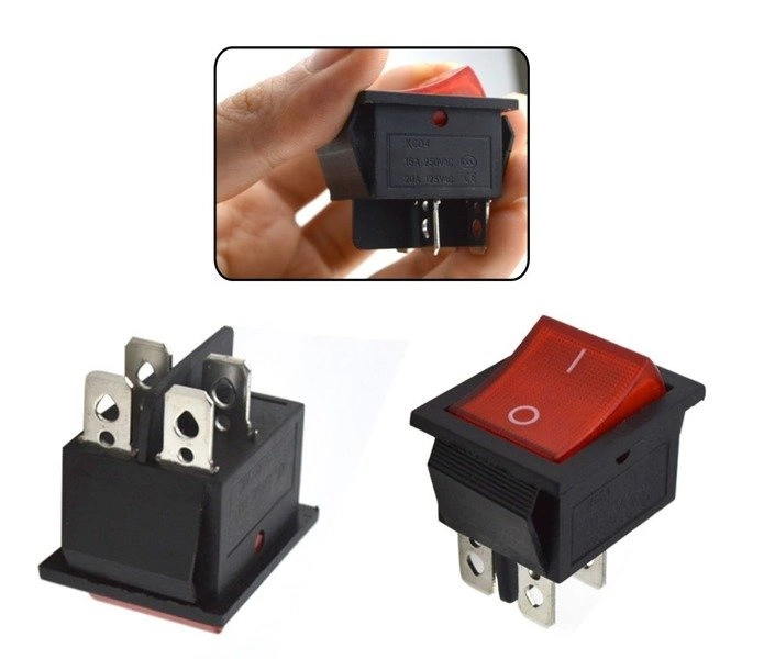 ⭐Przełącznik Klawiszowy KCD4 250V 16A Czerwony Podświetlany ON/OFF 4-PIN✨
