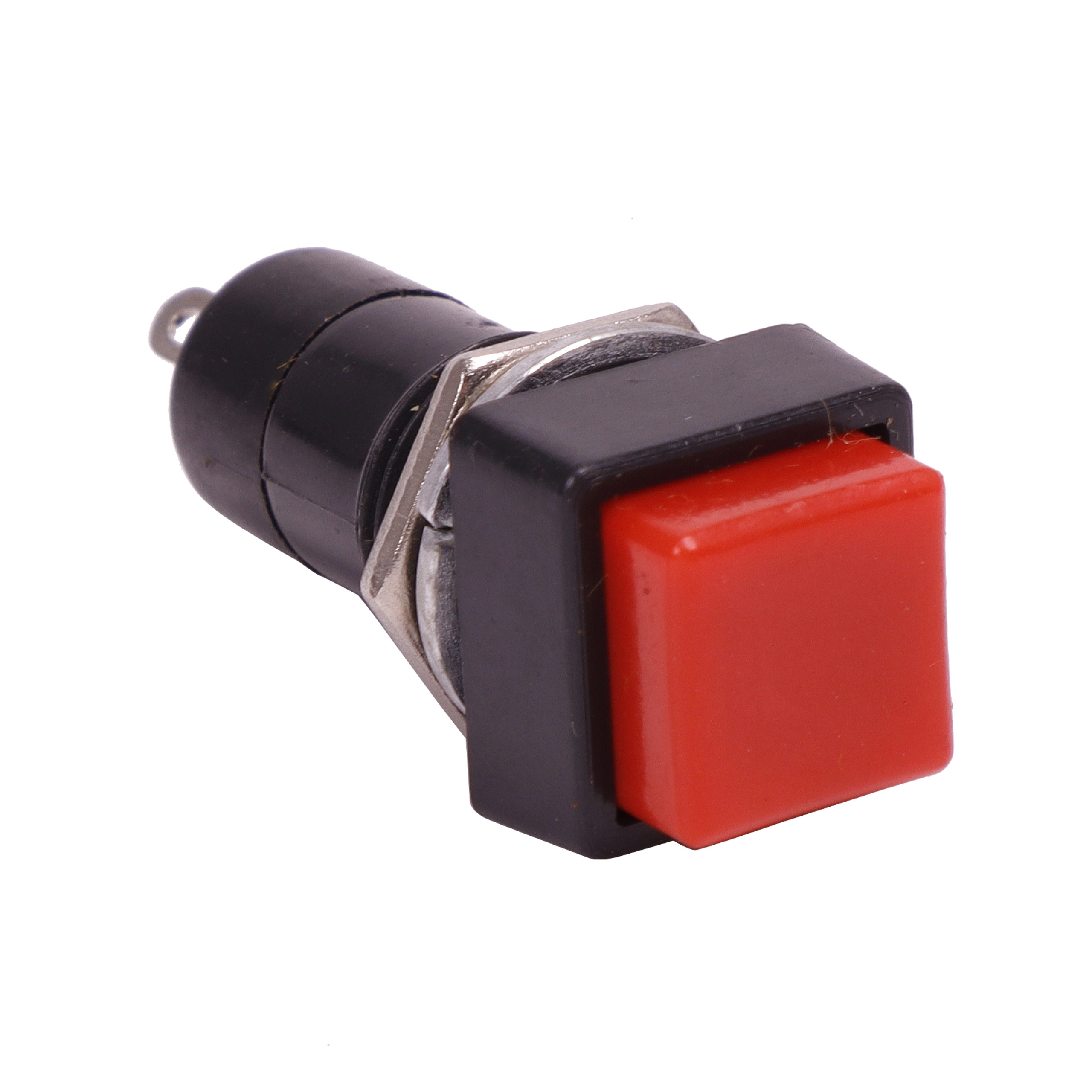 Przycisk PBS-12A to praktyczny przełącznik monostabilny, który działa tylko podczas nacisku – po puszczeniu powraca do pozycji wyjściowej. Dzięki czerwonej barwie i kwadratowemu kształtowi jest dobrze widoczny i wygodny w obsłudze.
