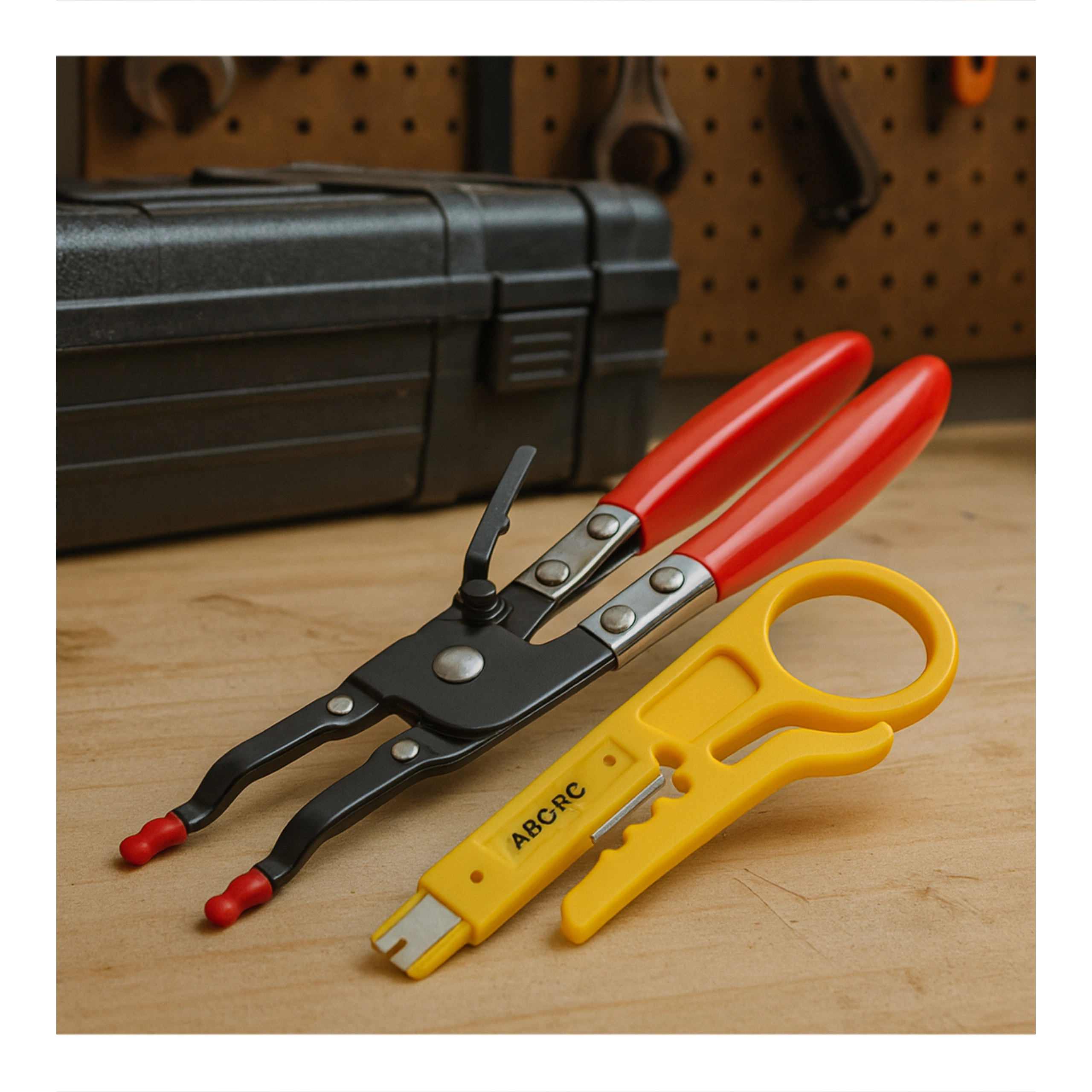 - Zestaw narzędzi do prac elektrycznych i elektronicznych: szczypce lutownicze zaciskowe oraz ściągacz izolacji. Umożliwia stabilne pozycjonowanie elementów podczas lutowania oraz szybkie, precyzyjne zdejmowanie izolacji z przewodów.