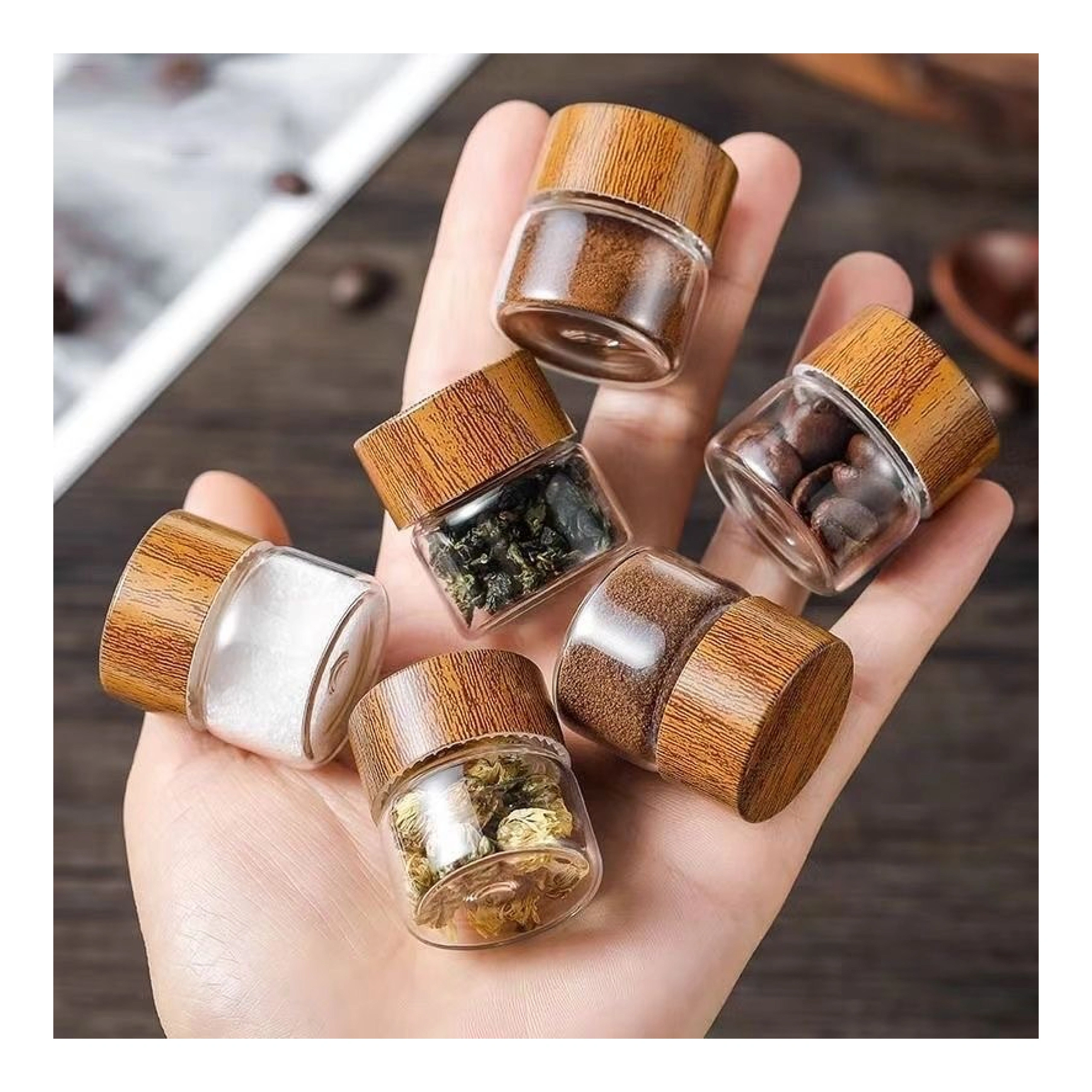 Mini szklany słoiczek 10ml z estetyczną zakrętką o wyglądzie drewna to stylowe i praktyczne rozwiązanie do przechowywania niewielkich ilości kosmetyków, kremów, próbek, przypraw czy olejków. Wykonany z przezroczystego szkła i wyposażony w szczelne zamknięcie, łączy elegancję z funkcjonalnością.