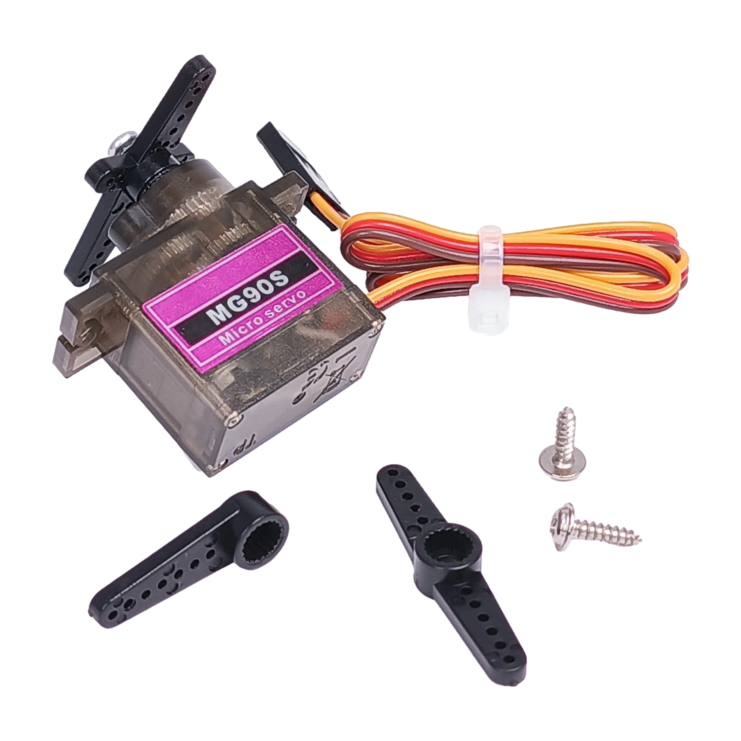 • The TowerPro MG-90S servo, weighing 13g and offering 1.8 kg/cm of torque with metal gears, is a powerful and durable solution. Its lightness, strength and precision of movement make it an ideal choice for hobbyists and engineers