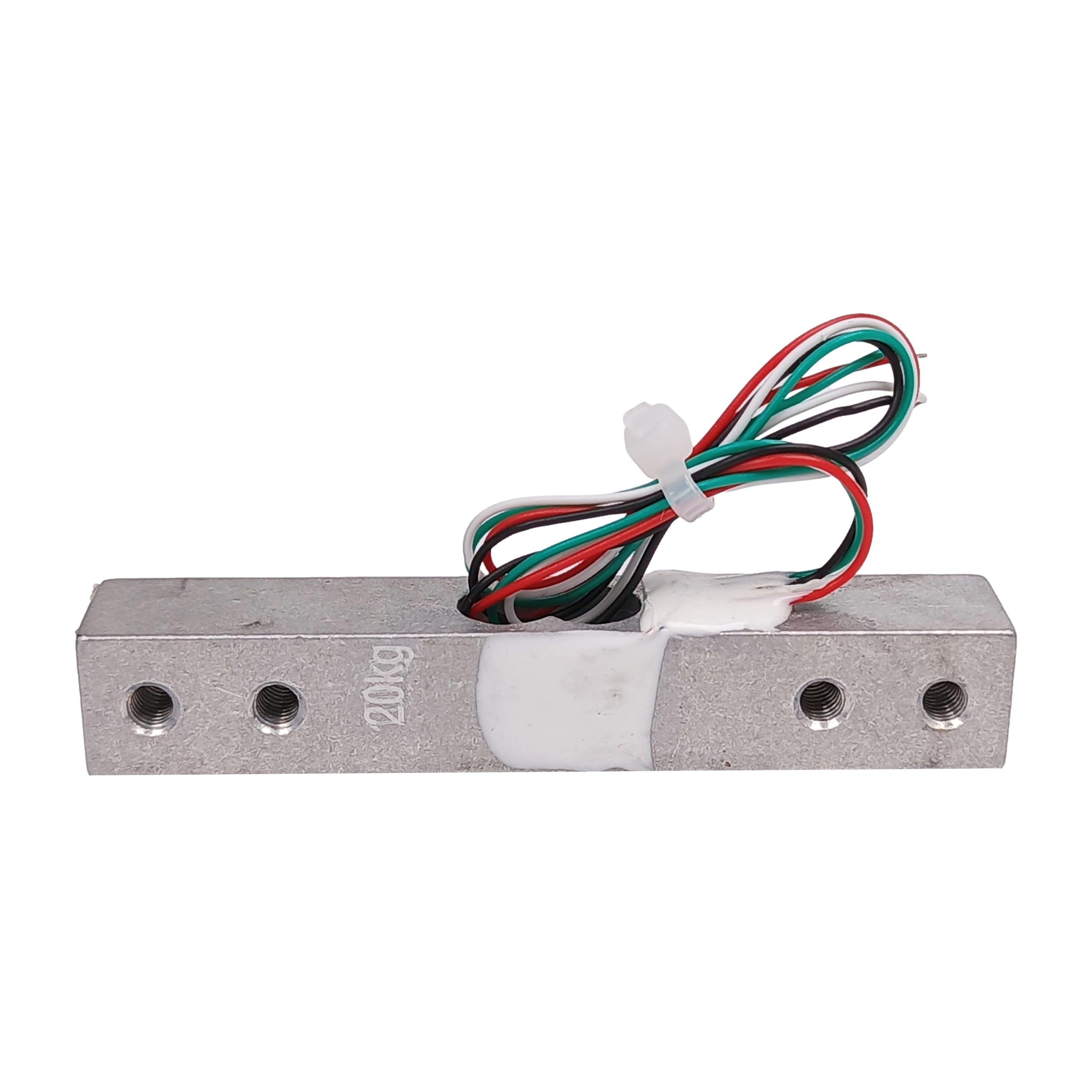 - Strain gauge beam operating in the 20 kg range. The connection cable is terminated with the ends with the insulation removed, and its length is 20 cm.