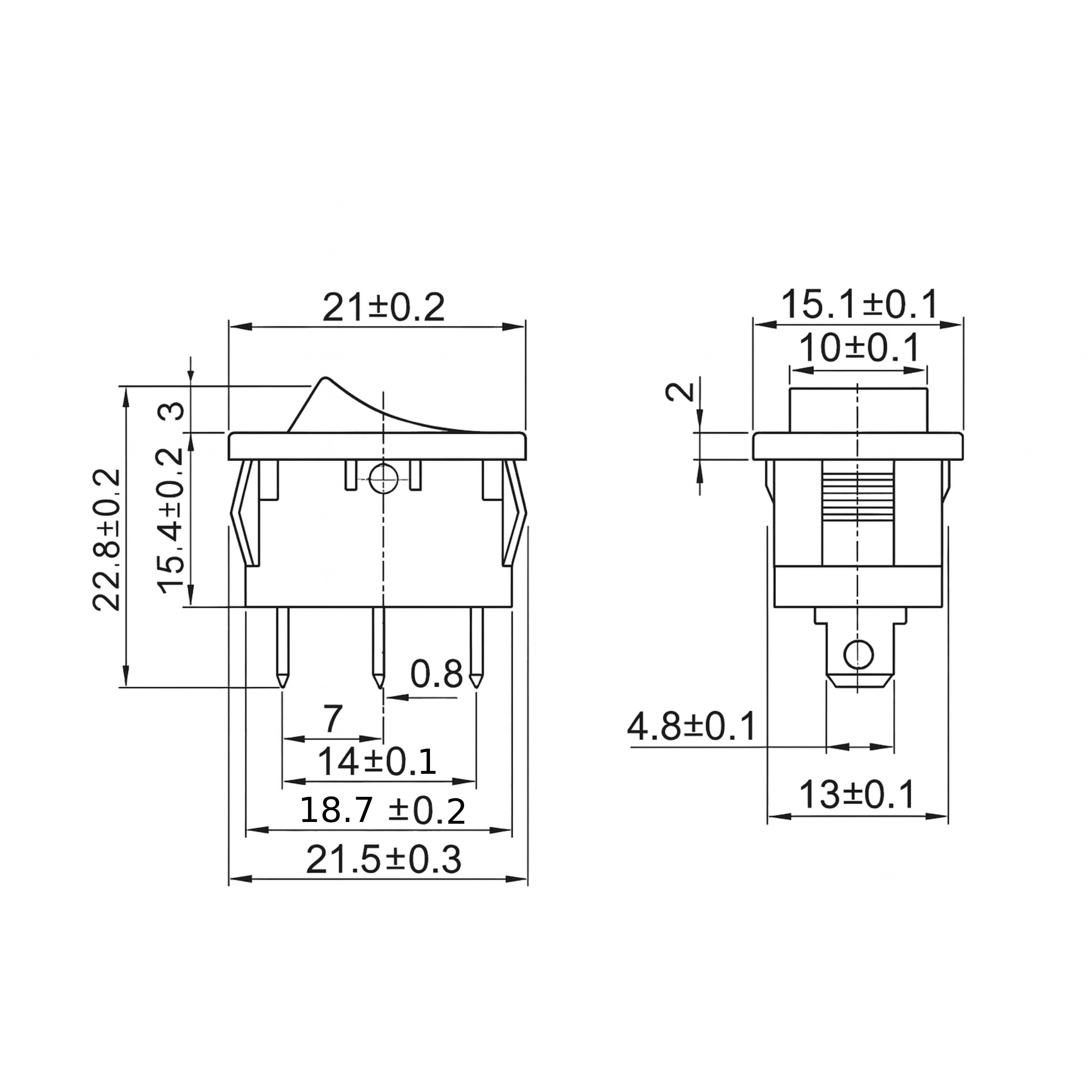 Przełącznik kołyskowy KCD1 to przełącznik ON/OFF. Wyłącznik posiada wyprowadzenia 2 PIN do zalutowania przewodów bądź nasunięcia konektora elektrycznego 4.8mm.