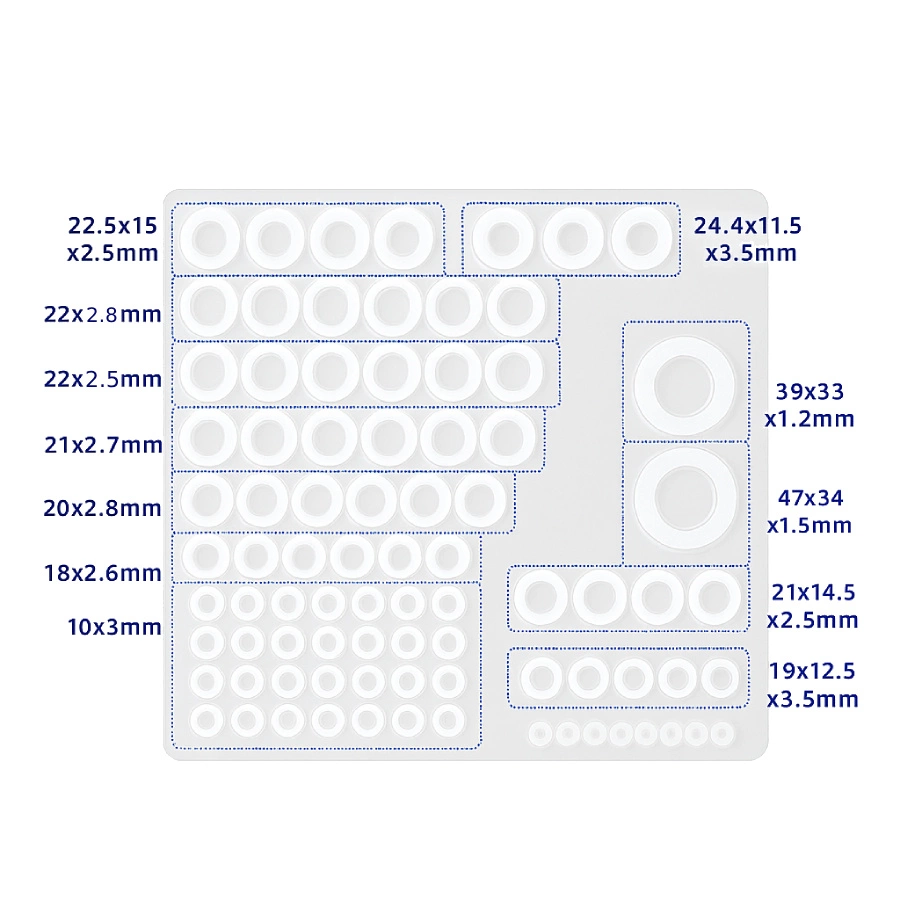 - Zestaw 79 przezroczystych, silikonowych uszczelek do kranu – elastycznych i odpornych na zużycie. Doskonałe do uszczelniania połączeń w instalacjach wodnych. Różnorodne rozmiary w jednym komplecie sprawiają, że zestaw sprawdzi się w wielu naprawach