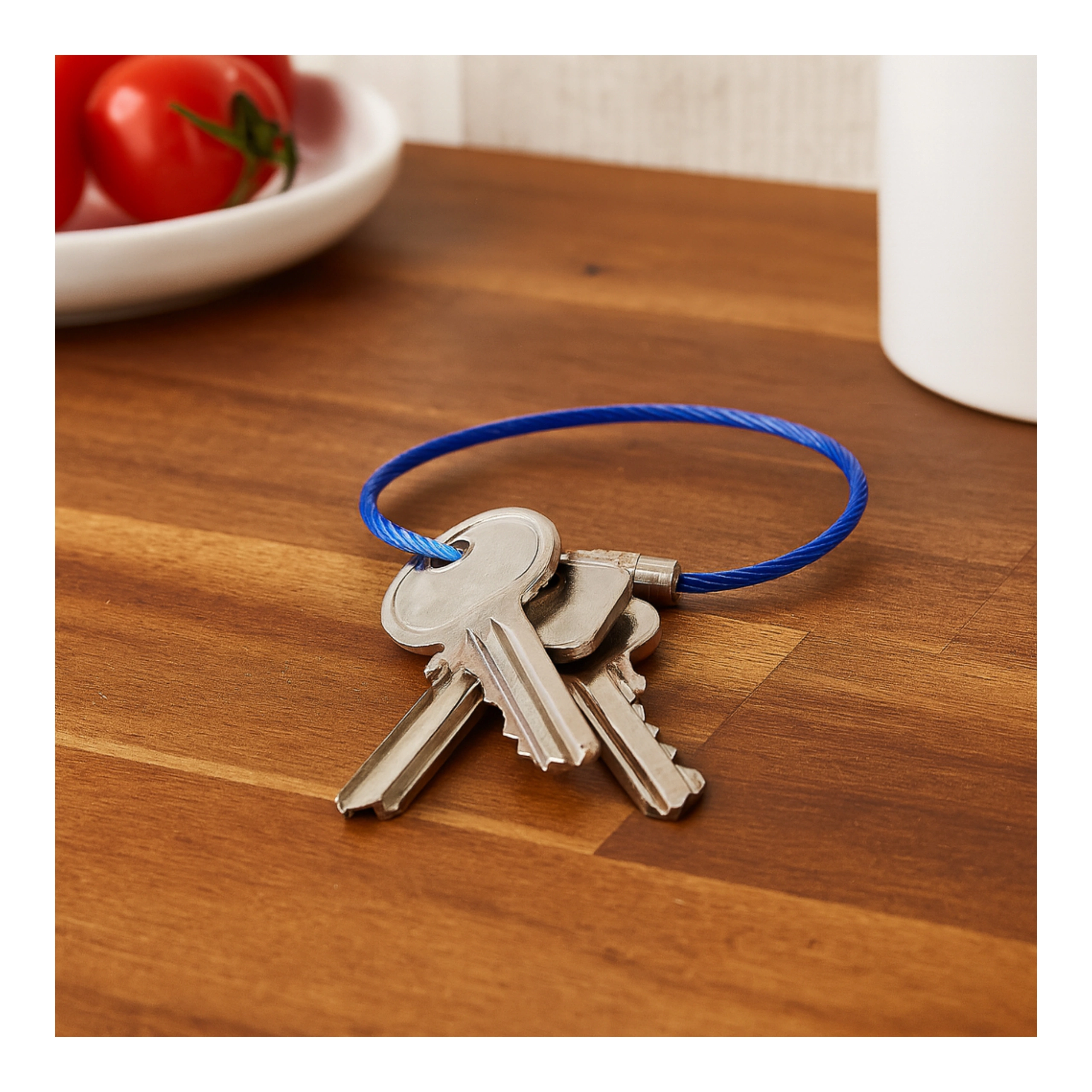✅ Zestaw 5 sztuk stalowych linek do kluczy w kolorze niebieskim.